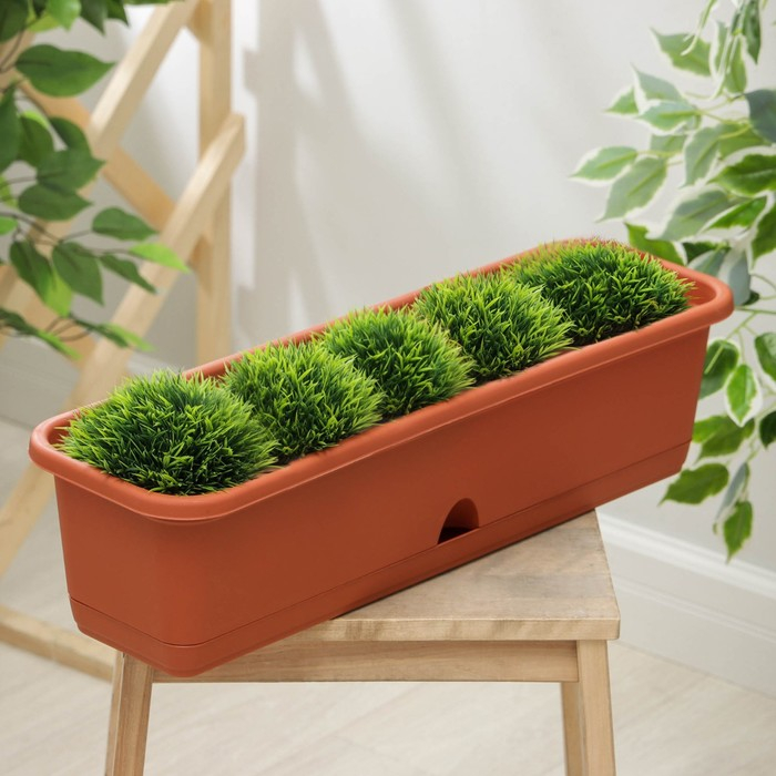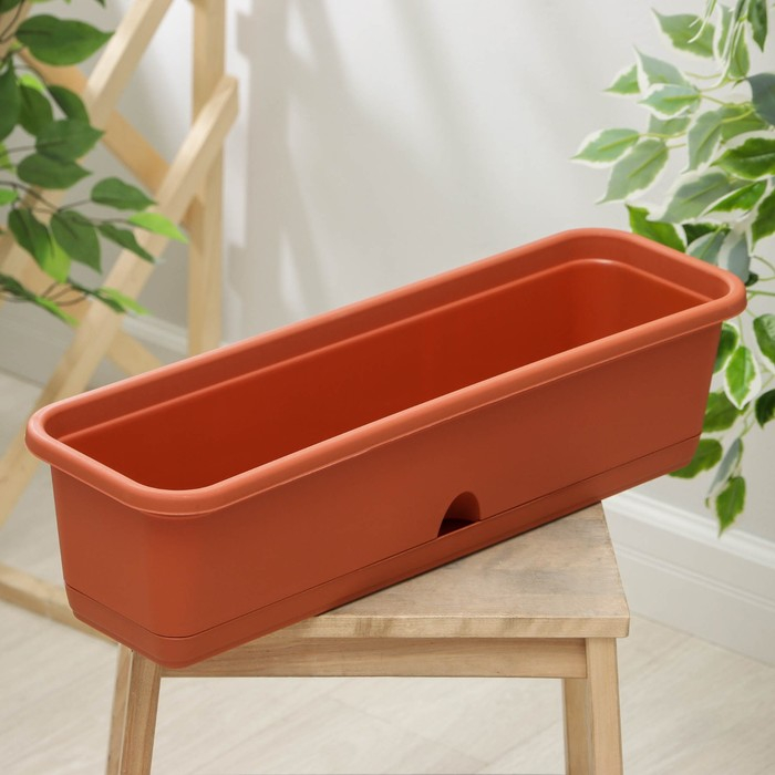 Ящик балконный с поддоном, 60 см, цвет терракотовый