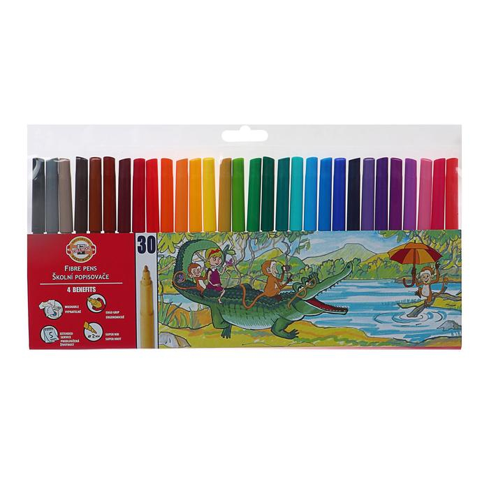 Фломастеры 30 цветов Koh-I-Noor "Звери", трёхгранные, пакет, европодвес