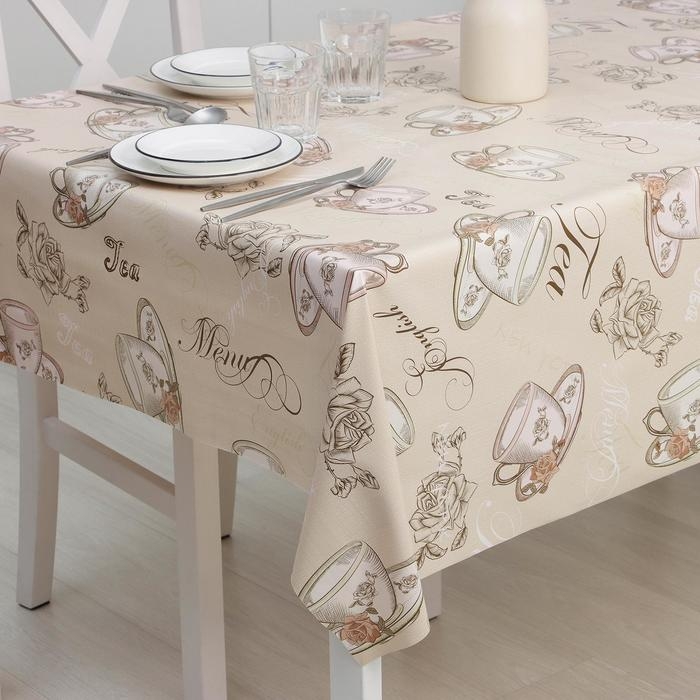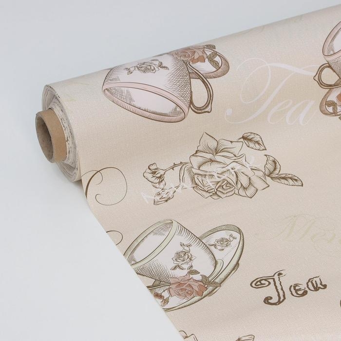 Клеёнка на стол Доляна «Чай», на тканевой основе, рулон 20 метров, ширина 137 см, общая толщина 0,22 мм, цвет бежевый