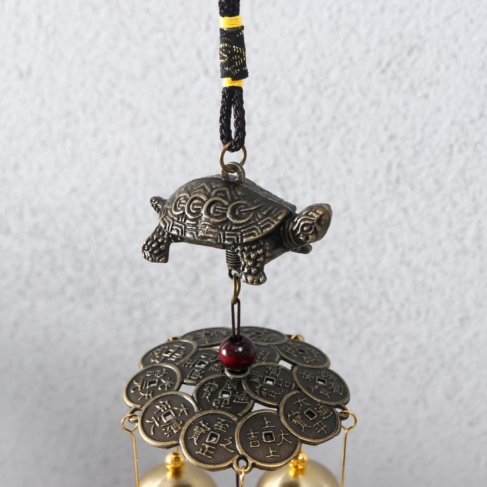 Музыка ветра металл "Черепаха на монетках" 5 колокольчиков 41х6 см