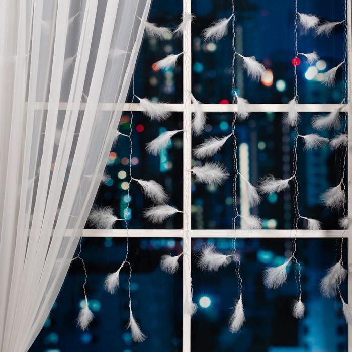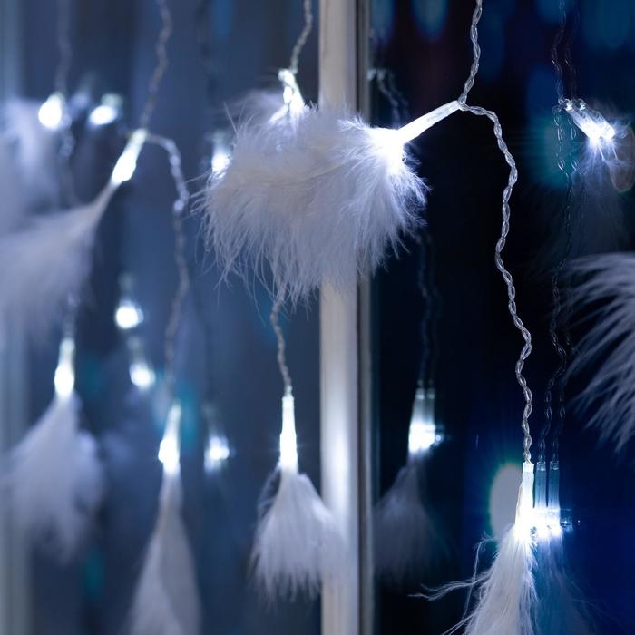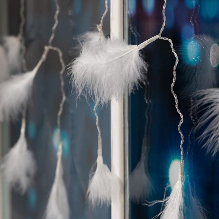 Гирлянда «Занавес» 3 × 1.4 м с насадками «Перья», IP20, прозрачная нить, 80 LED, свечение белое, 8 режимов, 220 В