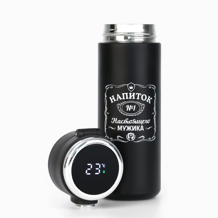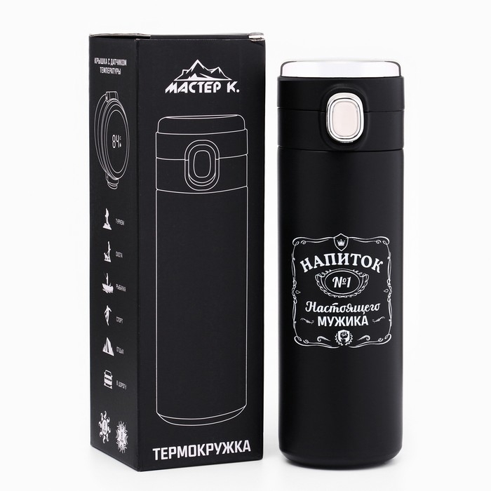 Термокружка, 420 мл, Simple "Напиток мужика", сохраняет тепло 8 ч, термометр