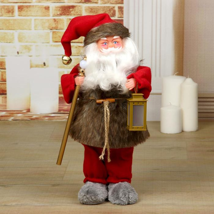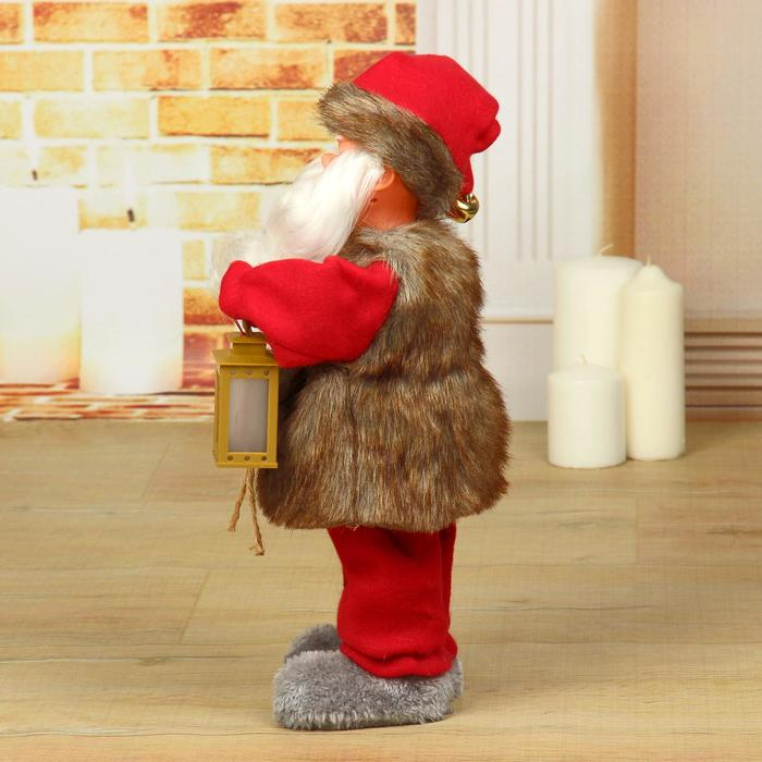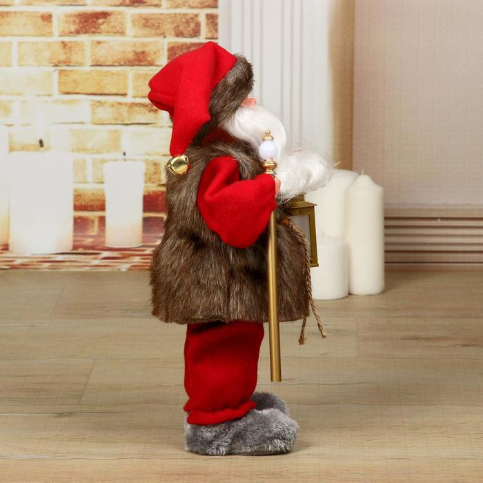 Дед Мороз "Телогрейка, с фонарём" с подсветкой, двигается, 38 см