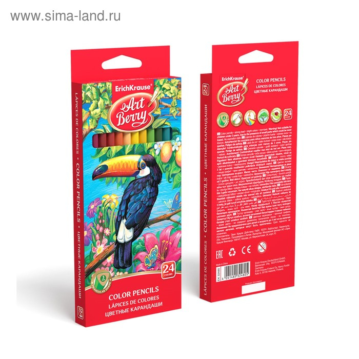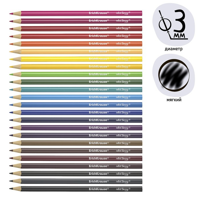 Карандаши 24 цвета ErichKrause ArtBerry премиум, дерево, трехгранные, яркий и мягкий грифель 3.0 мм, картонная упаковка, европодвес
