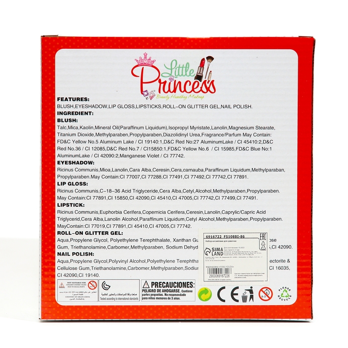 Детская косметика позволит ребёнку устраивать эксперименты со своим стилем. Набор поможет девочке подобрать оптимальные варианты для вечерних и дневных образов. Косметика без труда смывается водой или с помощью ватного диска и безопасна для детской кожи.