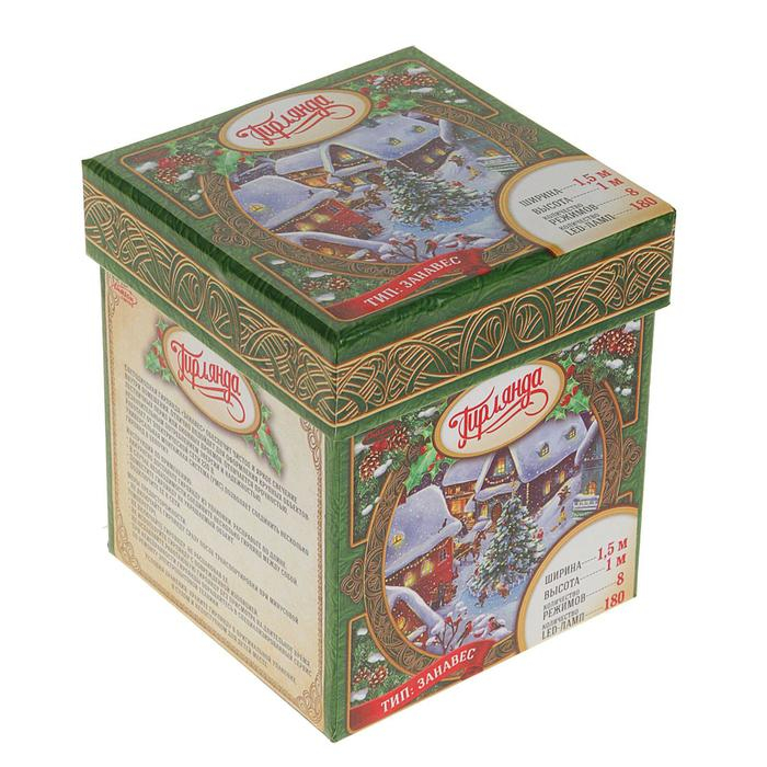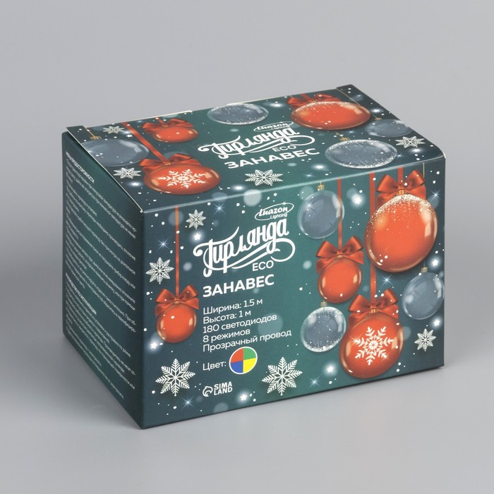 Гирлянда «Занавес» 1.5 × 1 м, IP20, прозрачная нить, 180 LED, свечение мульти, 8 режимов, 220 В