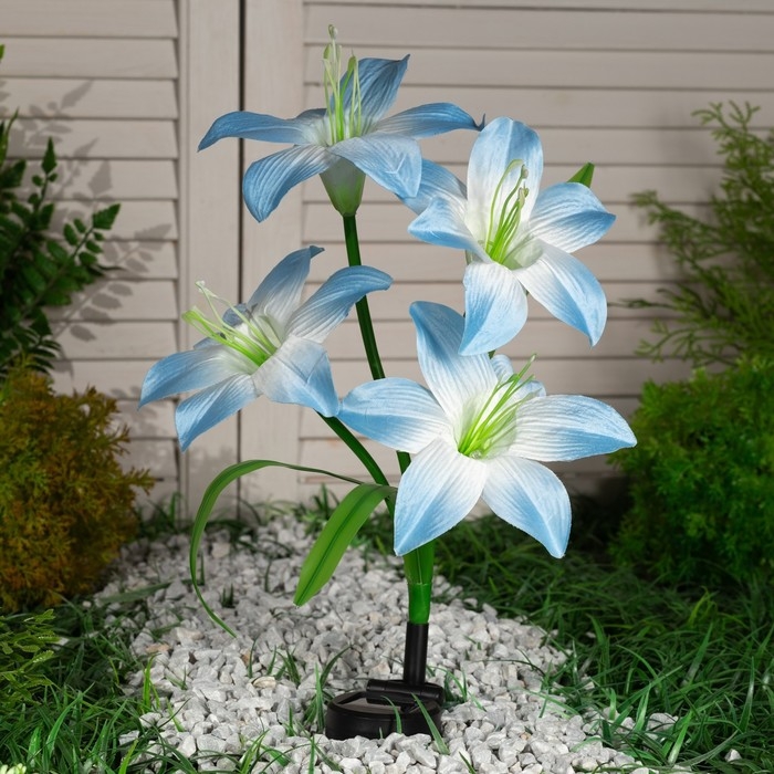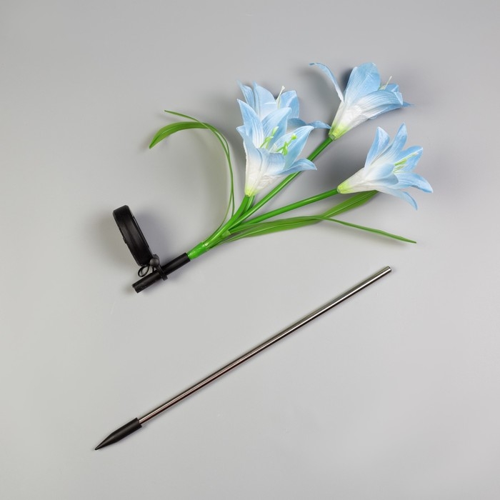 Садовый светильник на солнечной батарее «Лилия синяя», 80 см,4 LED, свечение мульти (RGB)