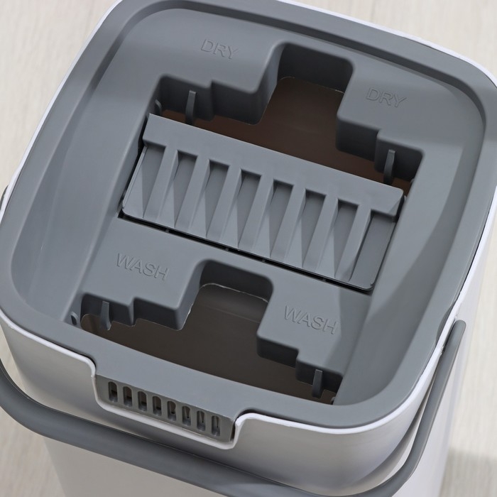 - Многофункциональность: ведро с отсеками можно использовать с швабрами разных типов, а его компактный размер позволяет легко хранить набор даже в небольших пространствах.