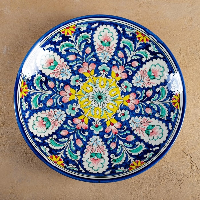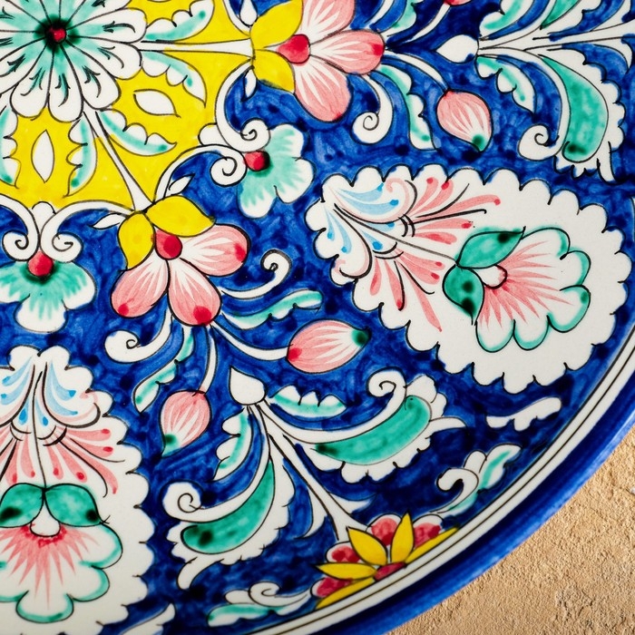 Ляган Риштанская Керамика "Цветы", 32 см, синий