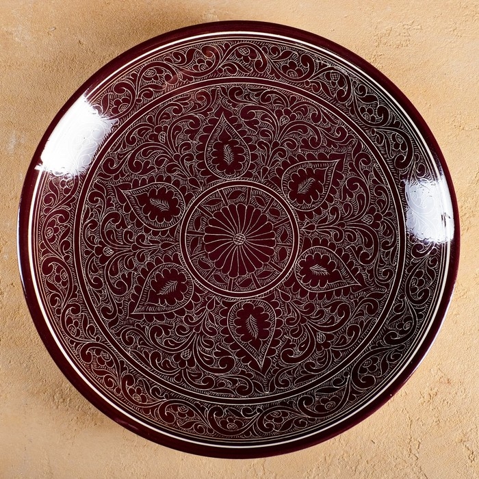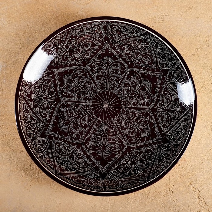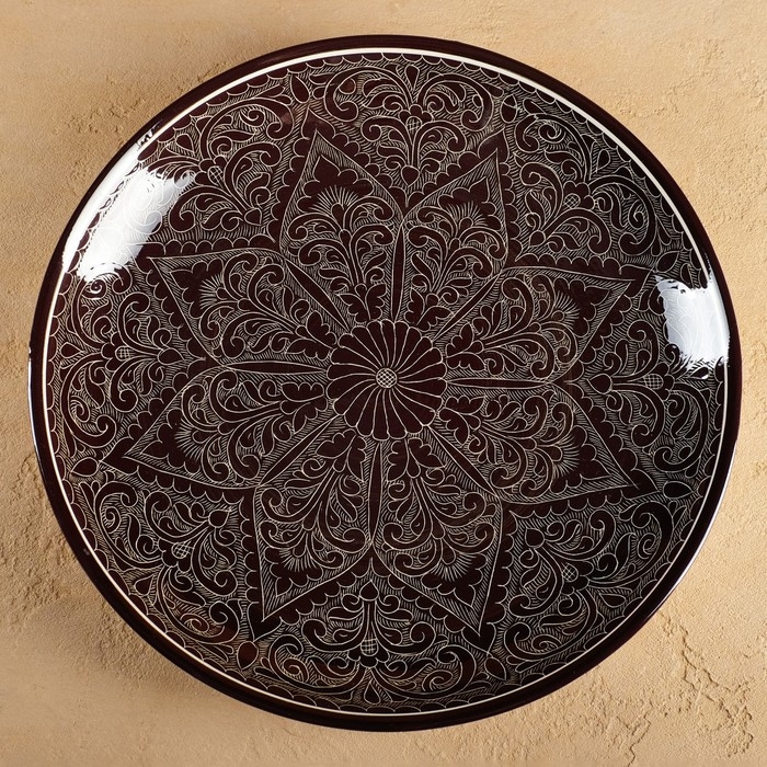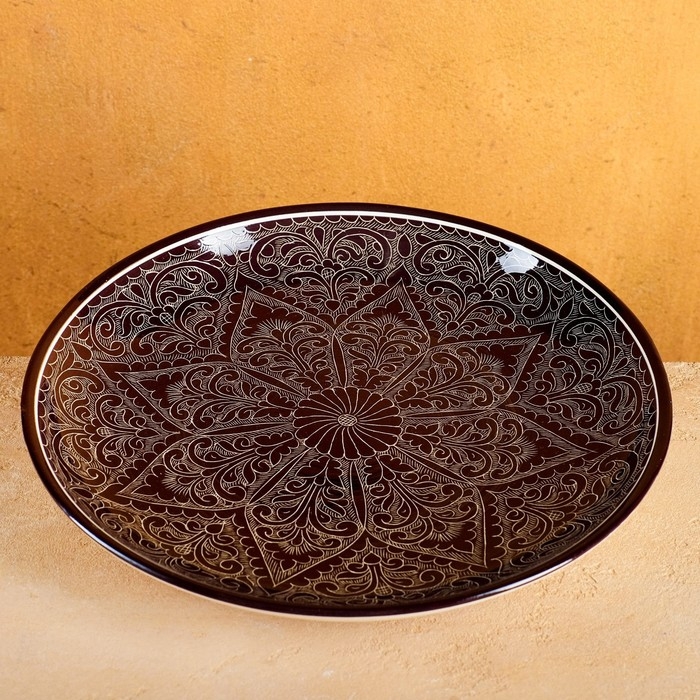 Ляган Риштанская Керамика "Узоры", 32 см, коричневый микс