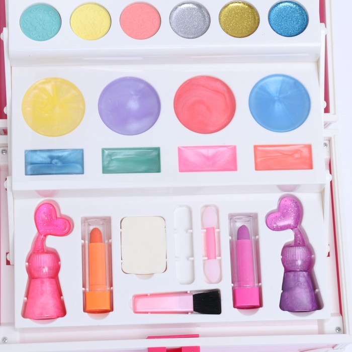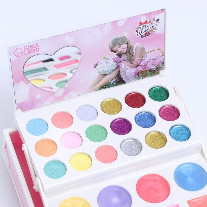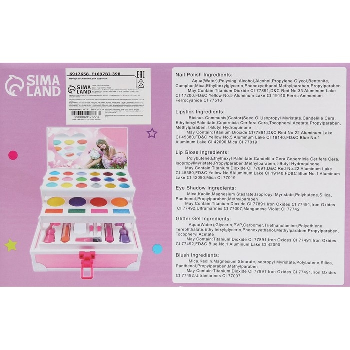 Детская косметика позволит ребёнку устраивать эксперименты со своим стилем. Набор поможет девочке подобрать оптимальные варианты для вечерних и дневных образов. Косметика без труда смывается водой или с помощью ватного диска и безопасна для детской кожи.