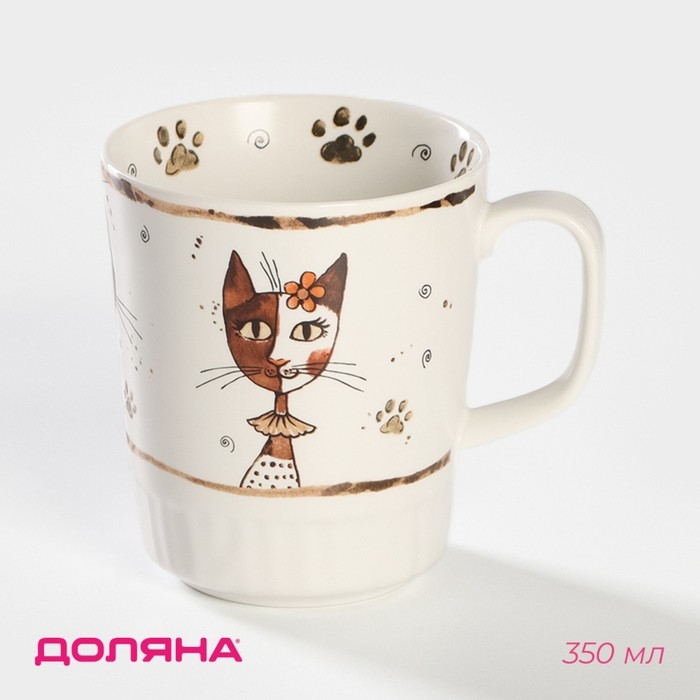 Кружка фарфоровая Доляна «Коты-аристократы», 350 мл, цвет белый