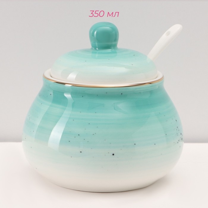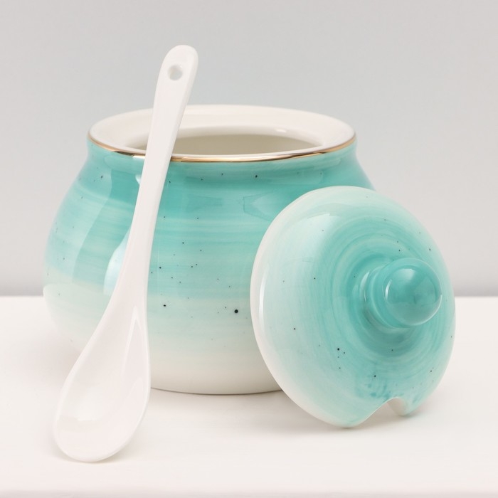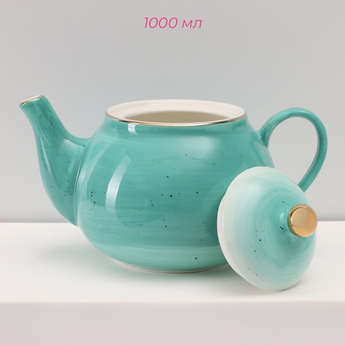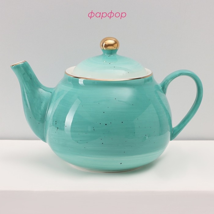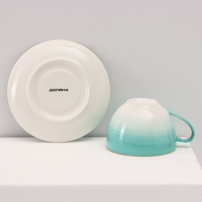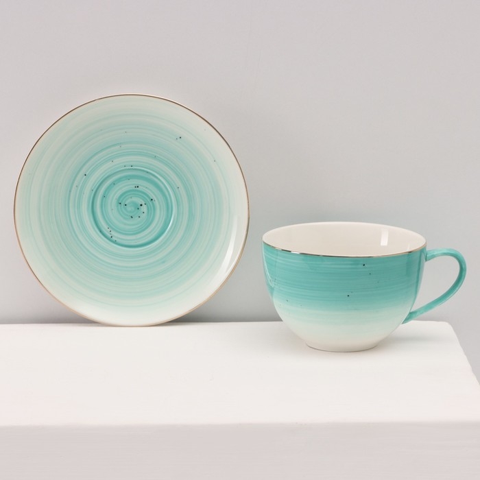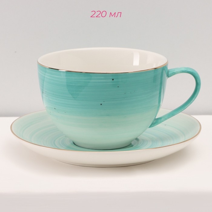 Сервиз фарфоровый чайный Доляна «Млечный путь», 15 предметов: 6 чашек 220 мл, 6 блюдец d=13,5 см, молочник 300 мл, сахарница 350 мл, чайник 1000 мл, цвет бирюзовый