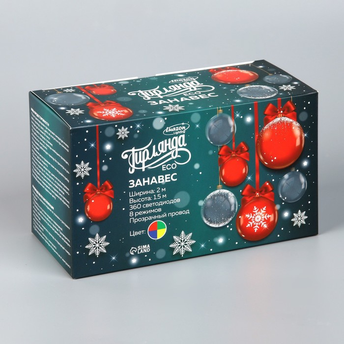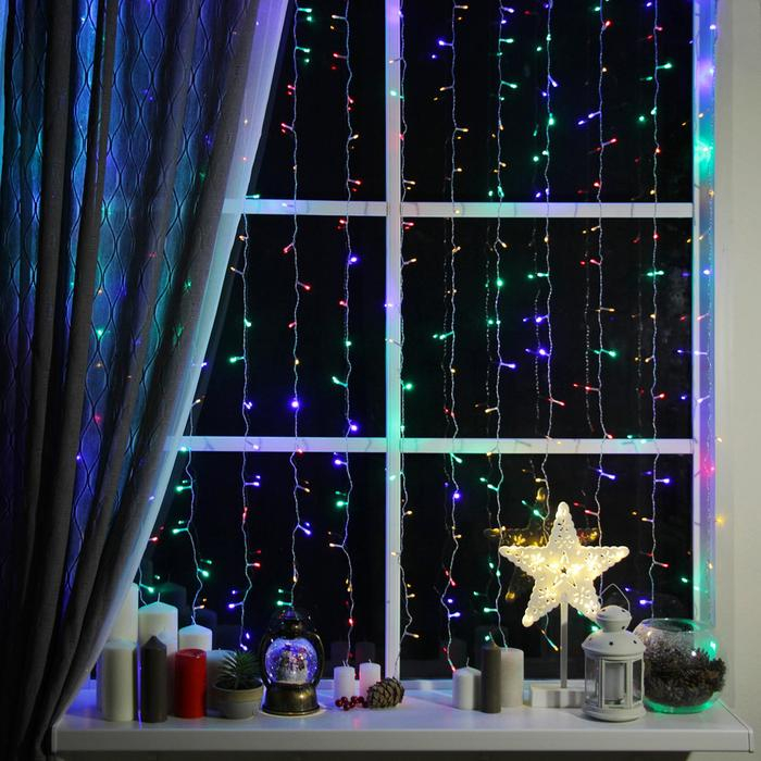 Гирлянда «Занавес» 2 × 1.5 м, IP20, прозрачная нить, 360 LED, свечение мульти, 8 режимов, 220 В