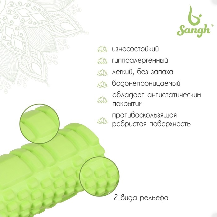 Ролик массажный Sangh, 29х9 см, цвет зелёный