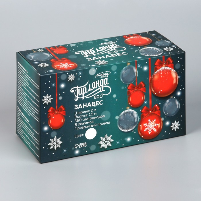 Гирлянда «Занавес» 2 × 1.5 м, IP20, прозрачная нить, 360 LED, свечение белое, 8 режимов, 220 В