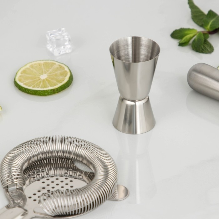 Набор для приготовления коктейлей «Король бара», гейзер, джиггер, шейкер 600 мл, стрейнер, ложка