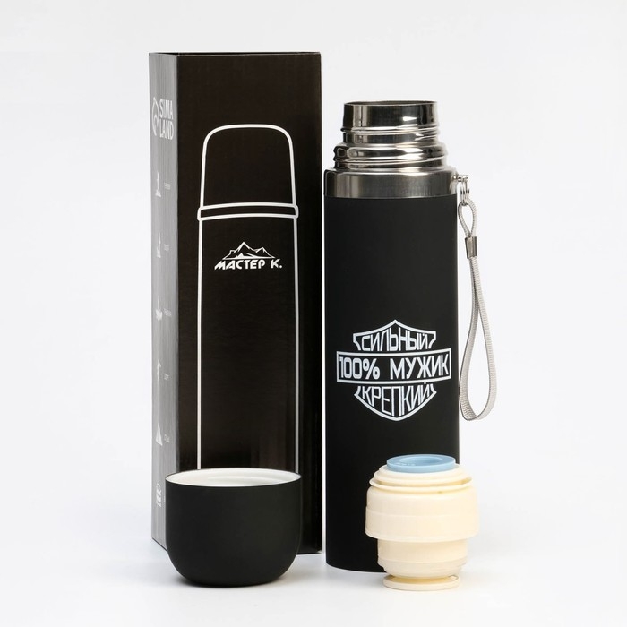 Термос, 500 мл, Гильза "100 % Мужик", с кружкой, сохраняет тепло 10 ч, 6.5 х 24 см
