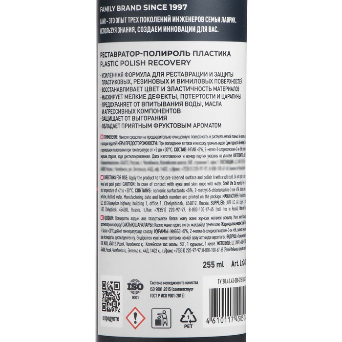 Полироль-реставратор пластика LAVR, 255 мл, флакон Ln2405