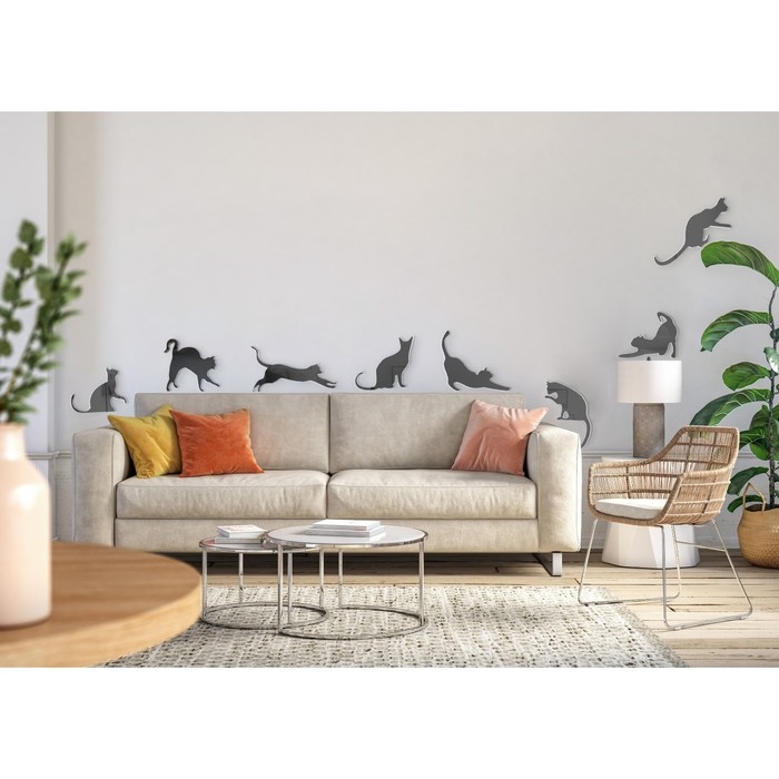 Наклейки интерьерные "Котики", зеркальные, декор на стену, набор 8 шт