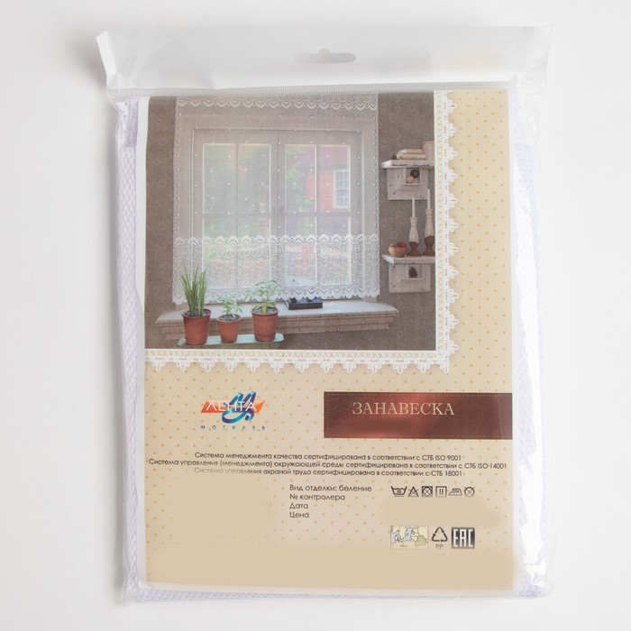 Тюль на кухню без шторной ленты, 200х165 см, цвет белый, 100% полиэстер