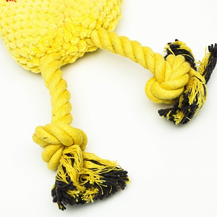 Игрушка мягкая для собак "Веселая мышка" с канатом и пищалкой, 20 х 13 см, жёлтая