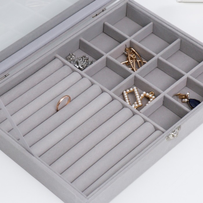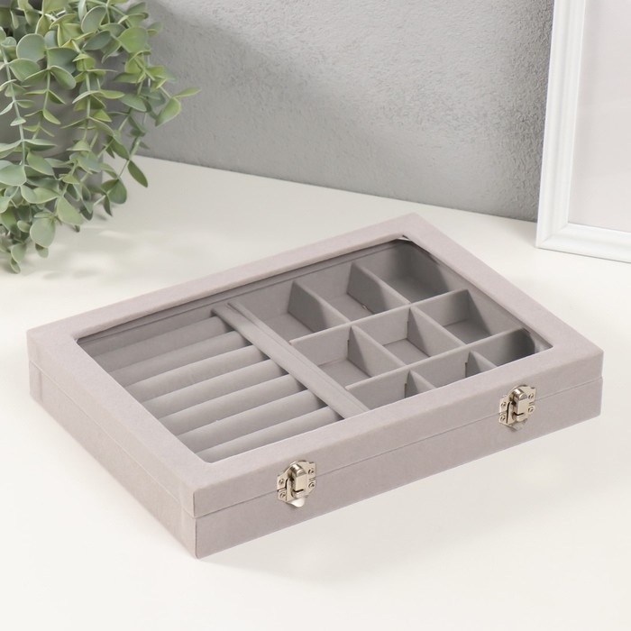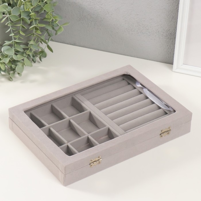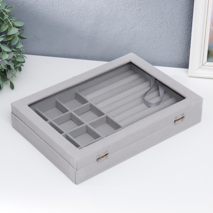 Шкатулка бархат для украшений "Серый туман" 5х20х28 см