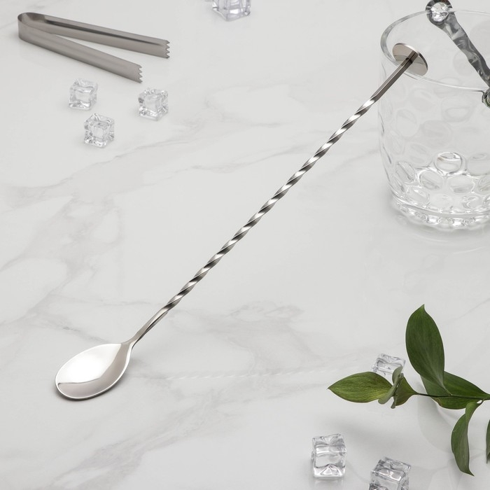 Ложка барная с мадлером из нержавеющей стали, длина 31 см, цвет серебряный