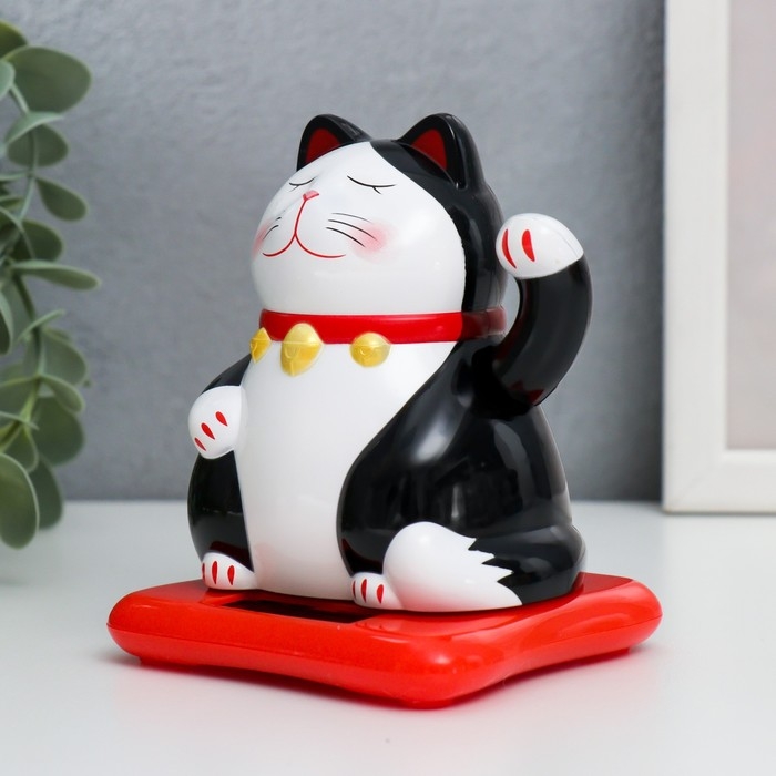 Маятник пластик от солнечной батареи "Кот манэки-нэко" чёрный 9,5х10х9,5 см