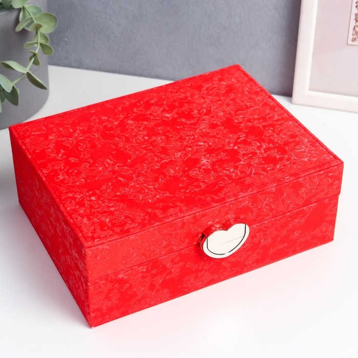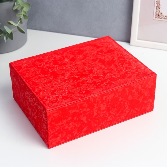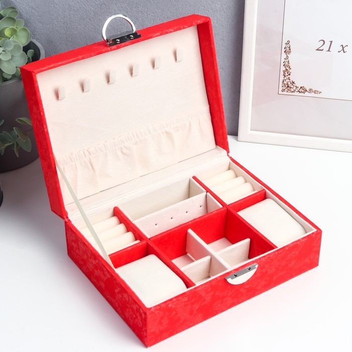 Шкатулка кожзам под часы 2 отделения и бижутерию "Под бархат" алая 8х15,5х20,5 см