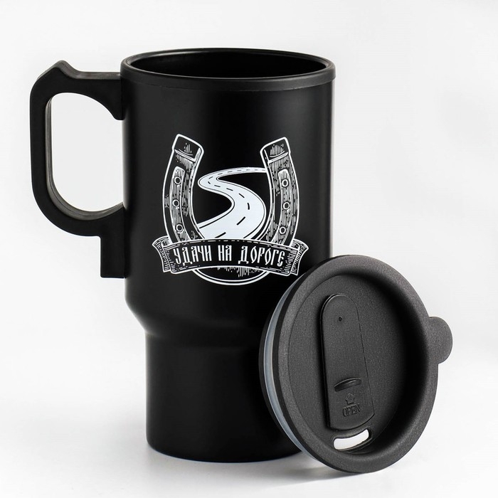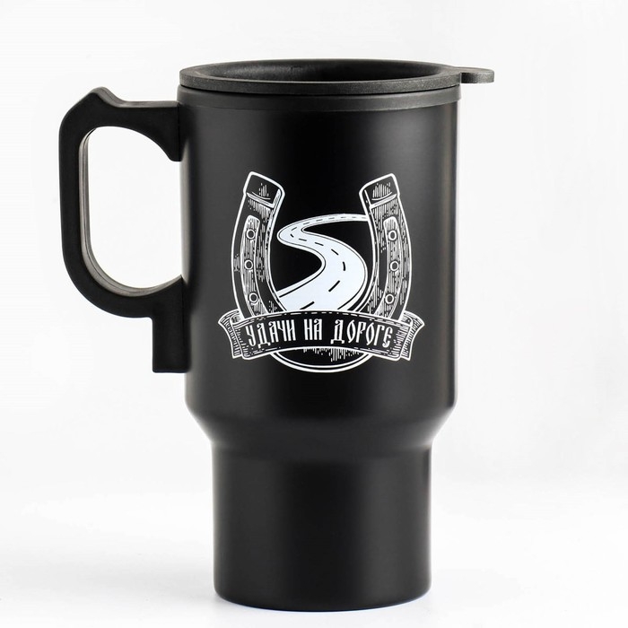 Термокружка, 450 мл, Автомобильная "Удачи на дороге", сохраняет тепло 4 ч, 12 х 17см