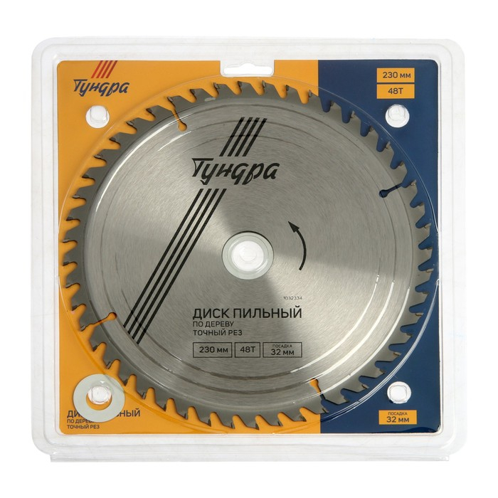 Диск пильный по дереву ТУНДРА, точный рез, 230 х 32 мм (кольца на 22,20,16), 48 зубьев