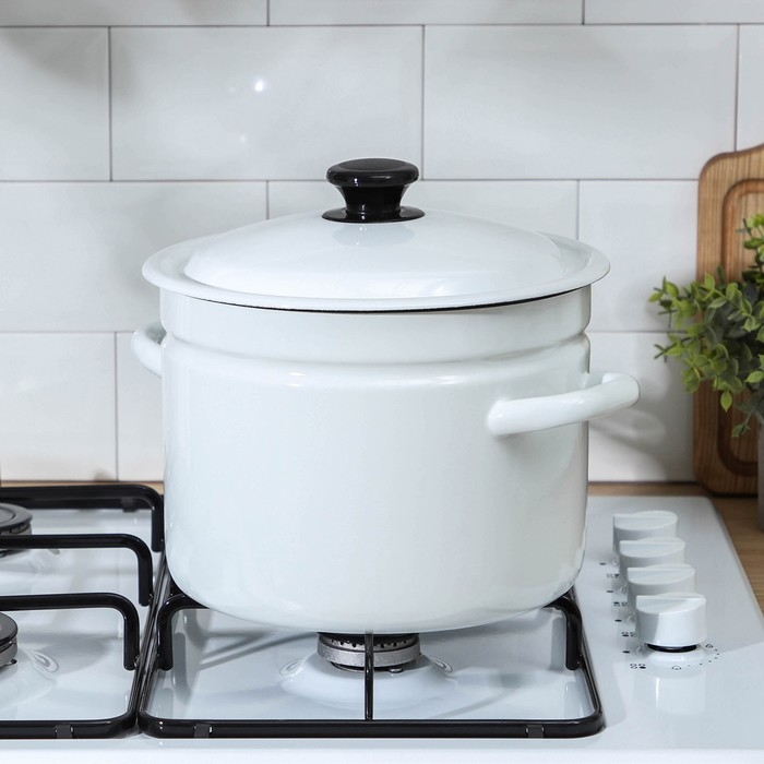 Кастрюля эмалированная без деколи, 6 л, цвет белый