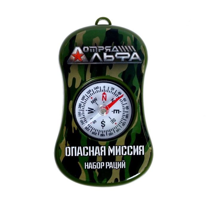 - В комплекте: 2 рации, каждая работает от 3-х батареек типа AAA (нет в комплекте), бинокль, компас.