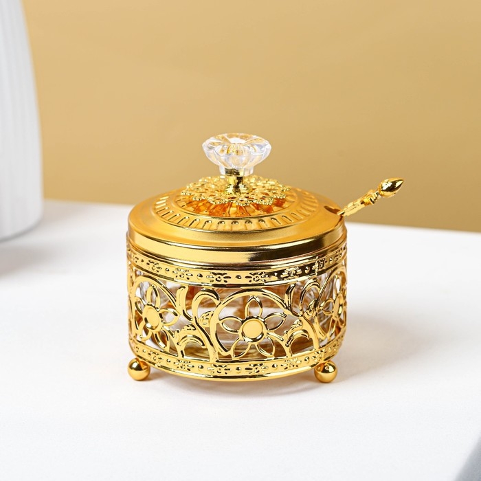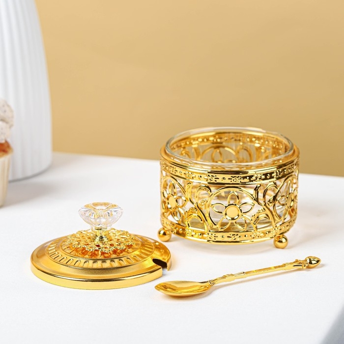 Сахарница «Дарина», 200 мл, 9×10 см, с ложкой, цвет золотой