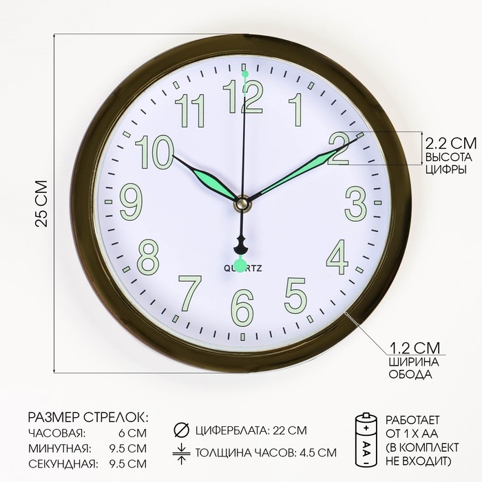 Часы настенные, интерьерные "Илони", d-25 см, флуоресцентные