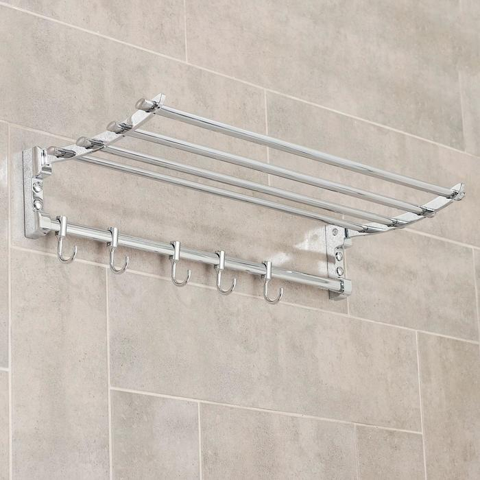 Полка откидная с двигающимися крючками Accoona A141, 57×30 см, цвет хром