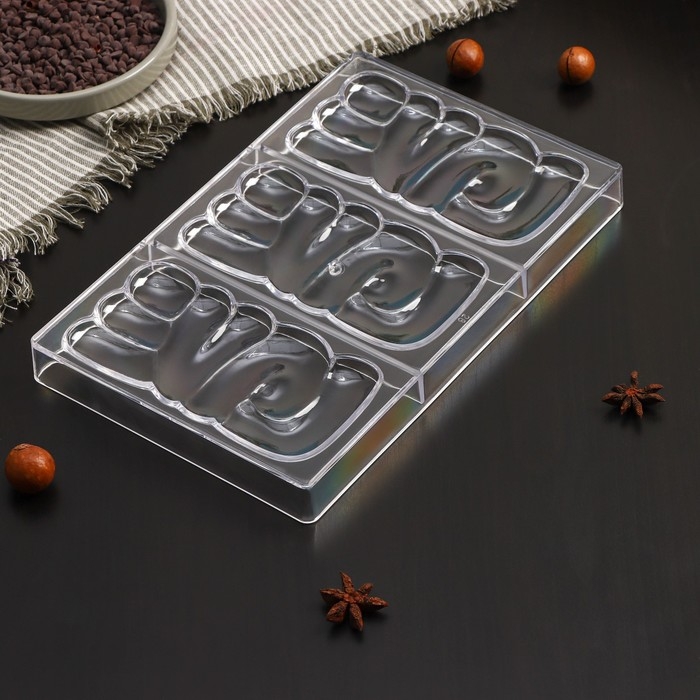 Форма для шоколада KONFINETTA LOVE, 27,5×17,5×2,5 см, 3 ячейки 7×7 см, цвет прозрачный