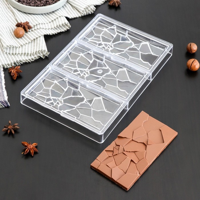 Форма для шоколада KONFINETTA «Сплит», 27,5×17,5×2,5 см, 3 ячейки 15,3×7,5×0,8 см, цвет прозрачный