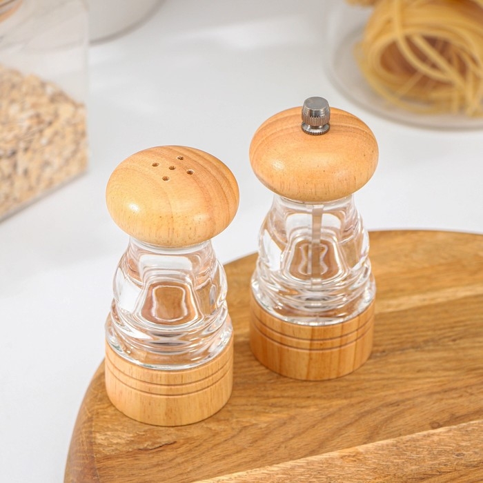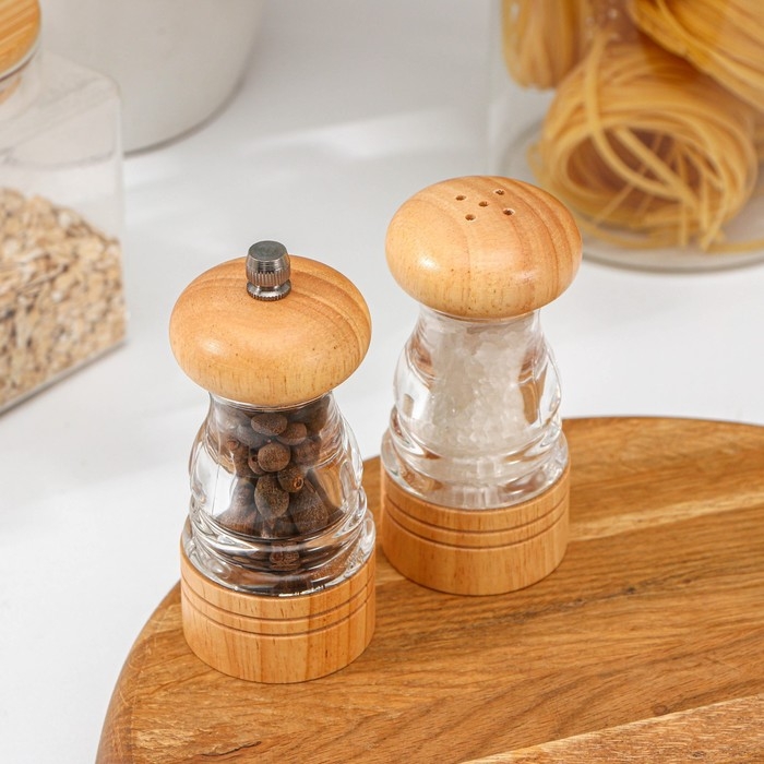 Набор мельниц для соли и перца Доляна, 2 предмета: 9,5×5 см, 10×5 см