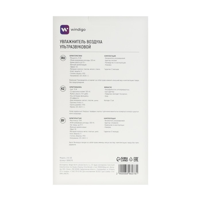 Увлажнитель воздуха Windigo LHU-08, ультразвуковой, 300 мл, 10 Вт, с эффектом 3D