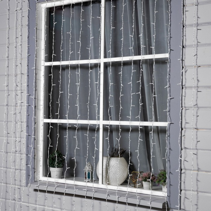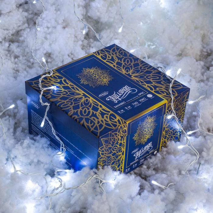 Гирлянда «Занавес» 2 × 3 м, IP44, УМС, белая нить, 760 LED, свечение белое, 220 В