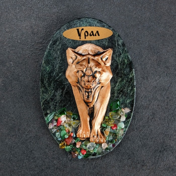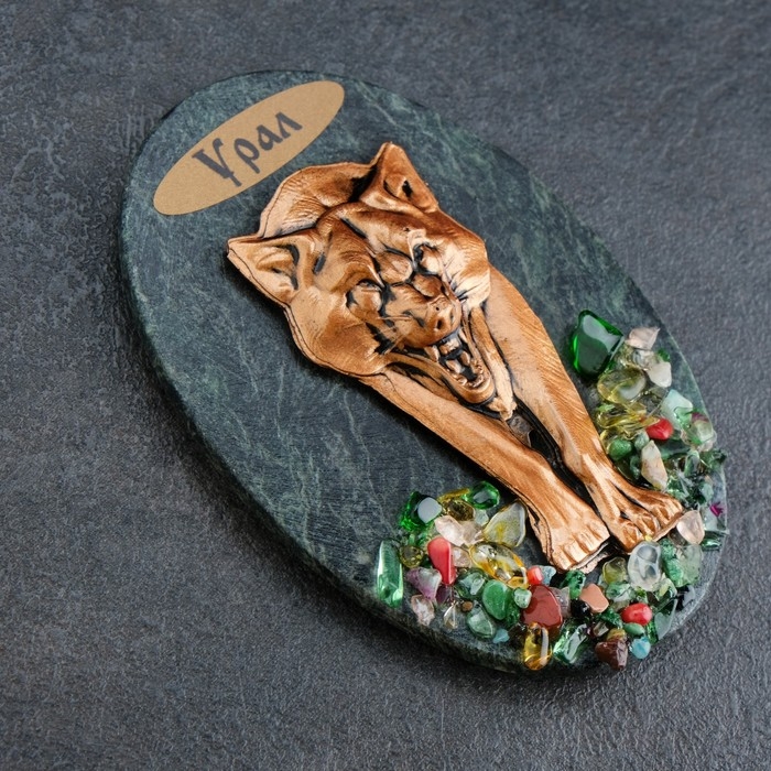 Магнит "Волк. Урал", змеевик, гипс
