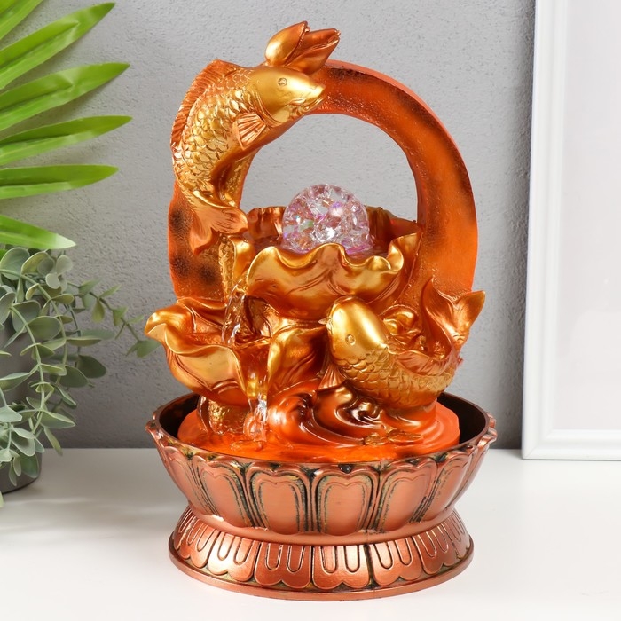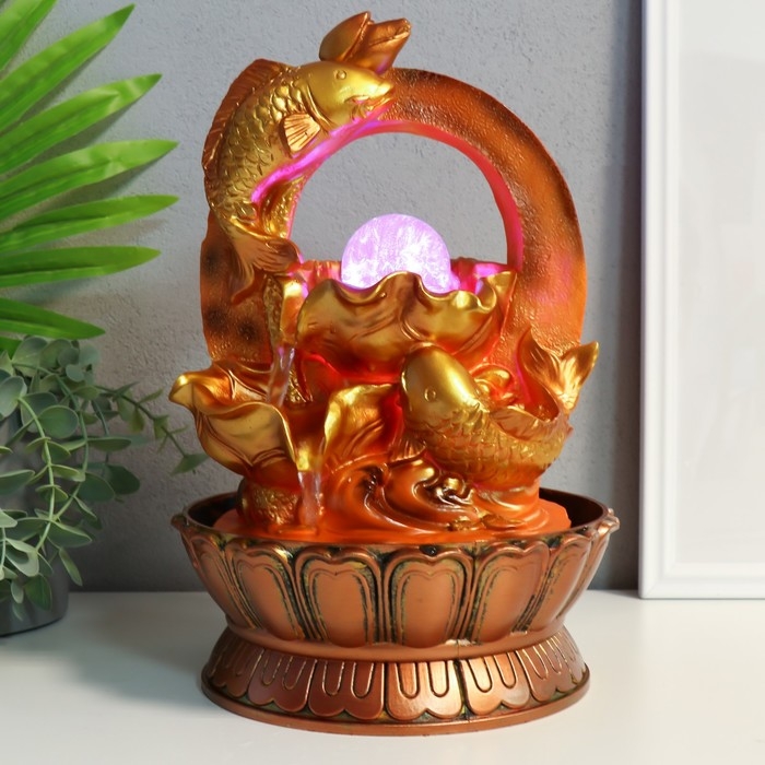 Фонтан настольный с подсветкой "Золотые карпы" 20х20х27 см