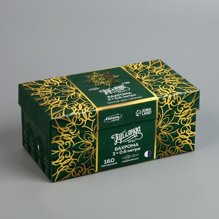 Гирлянда «Бахрома» 3 × 0.6 м, IP44, УМС, тёмная нить, 160 LED, свечение бело-синее, мигание, 220 В