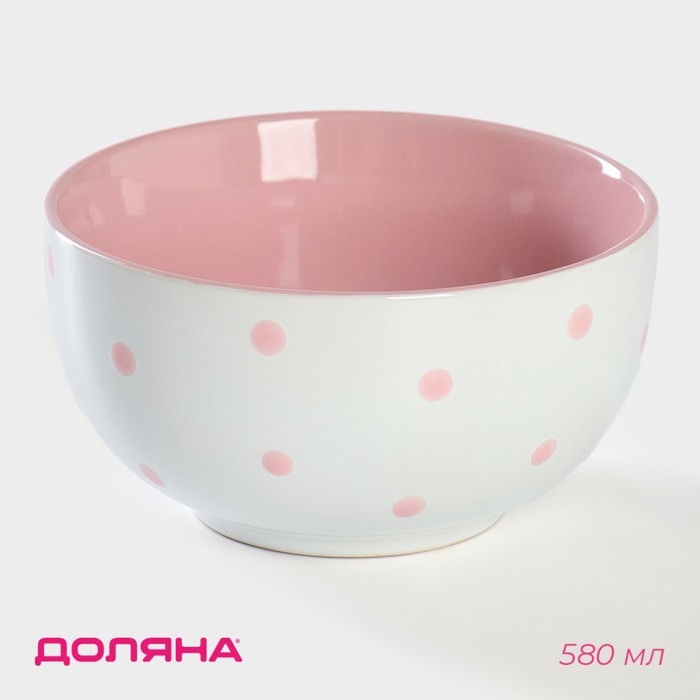 Салатник керамический Доляна «Горошек», 580 мл, цвет розовый