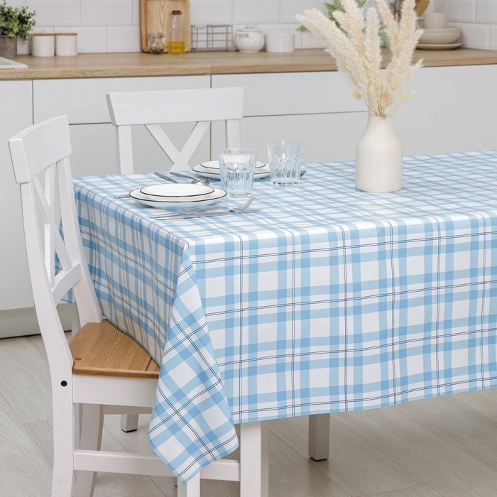 Клеёнка на стол Доляна «Клеточка», на нетканой основе, ширина 137 см, толщина 0,2 мм, рулон 20 м, цвет голубой