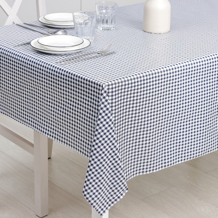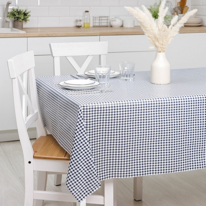 Клеёнка на стол Доляна «Клетка», на нетканой основе, ширина 137 см, толщина 0,2 мм, рулон 20 м, цвет синий