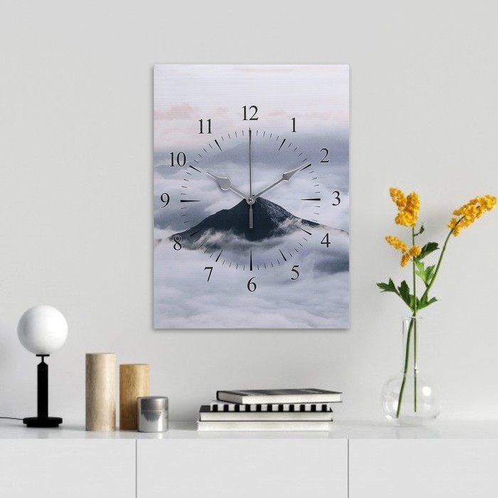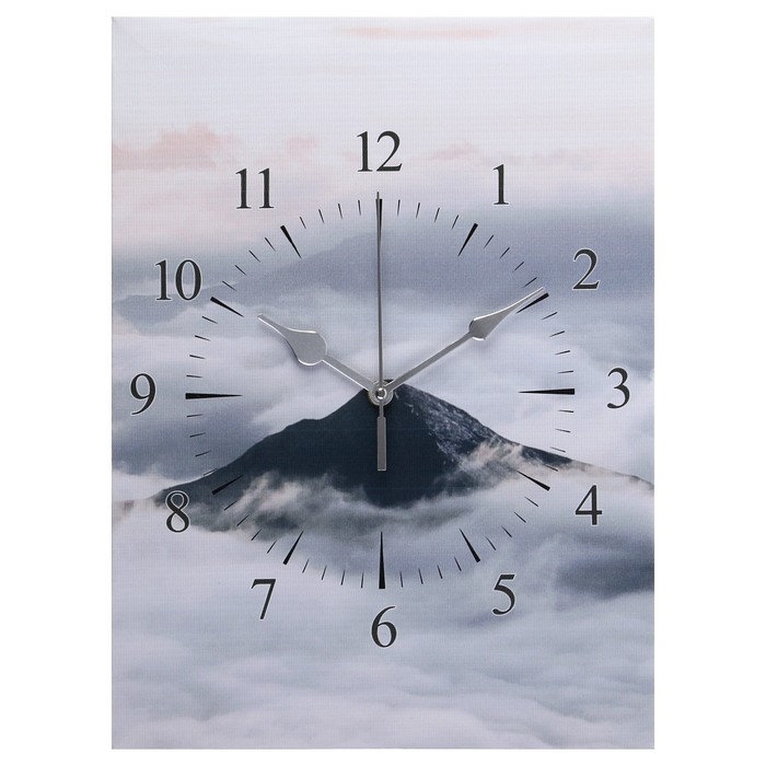 Часы-картина настенные, интерьерные "Горы в облаках", 30 х 40 см, на холсте, бесшумные
