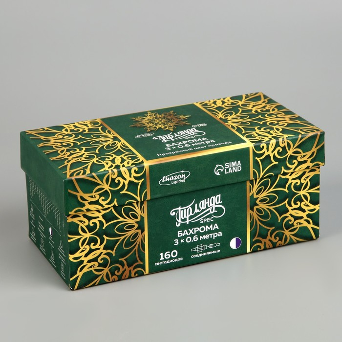 Гирлянда «Бахрома» 3 × 0.6 м, IP44, УМС, прозрачная нить, 160 LED, свечение бело-синее, мигание, 220 В